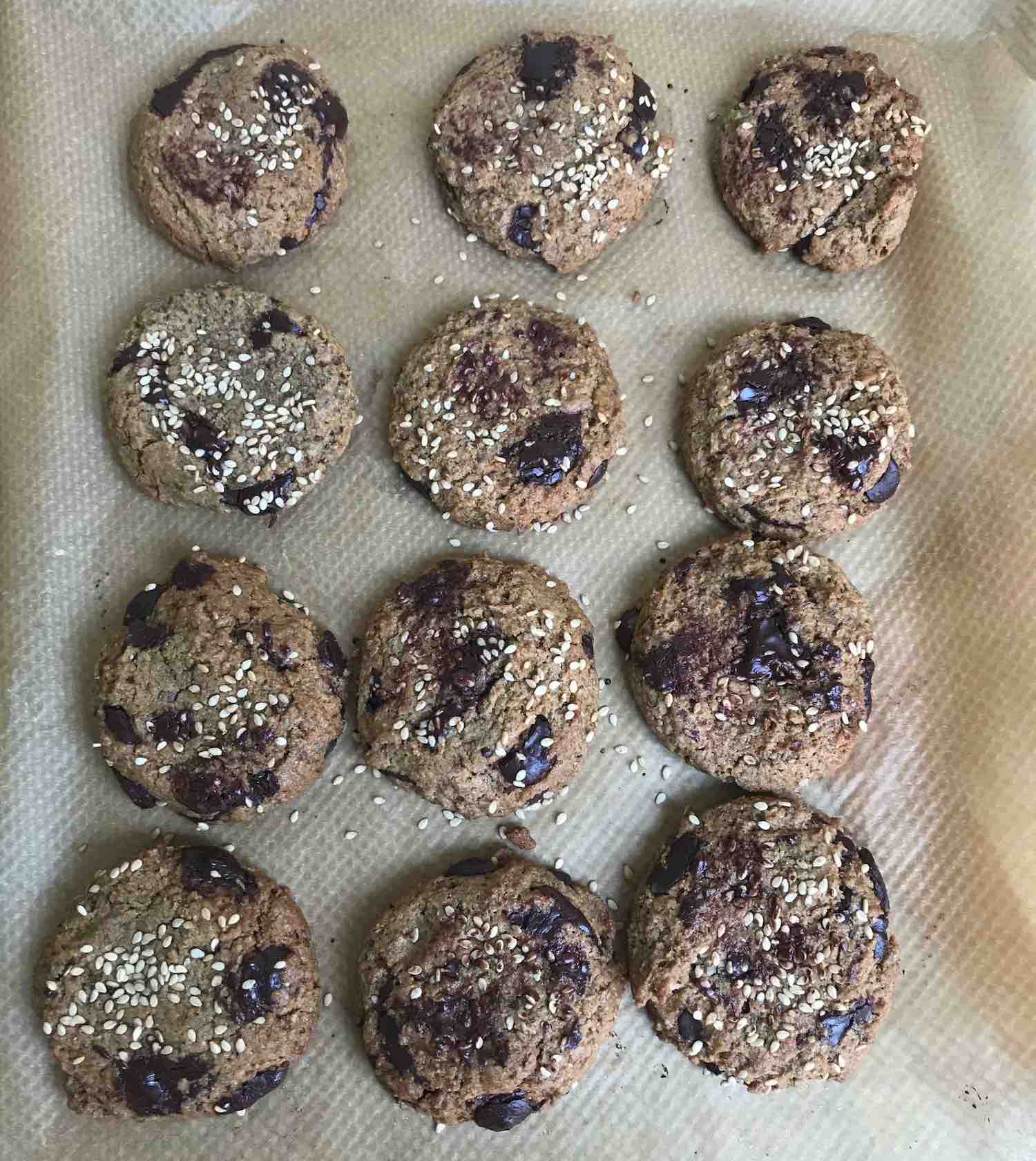 These beauties are rich, indulgent and very adult cookies. Made with spelt and rye flour, maple syrup and coconut sugar-sweetened chocolate chips. Wheat free, refined sugar-free and stunning.